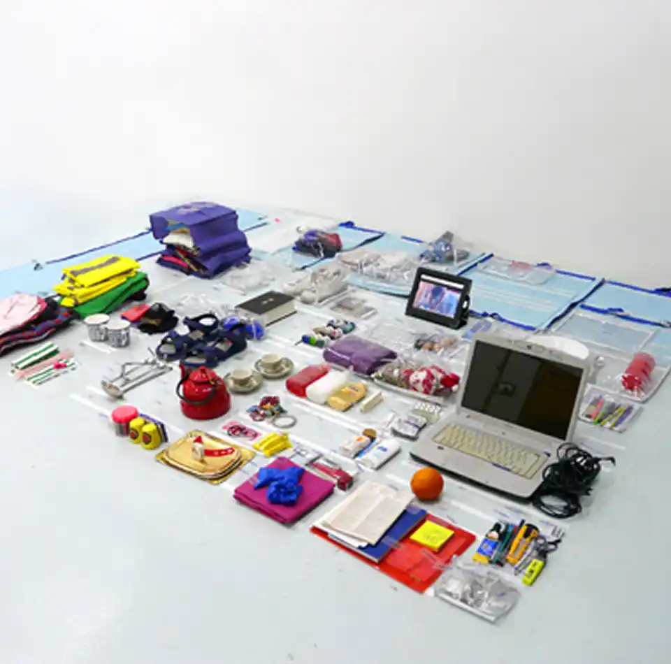 My stuff is home. Pictures of the exhibition “Furnishing temporalities / Sequencing spaces”, _2B Space to be, Jan-Feb 18. Displayed unpacked. The house requires customer assembly. The separate components are zipped following the assembly instructions.