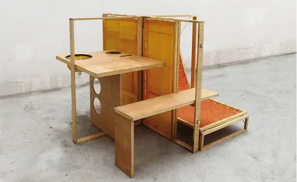 In this case, the device contains all the necessary furniture to support the daily actions performed in any house. The design follows the principles of knock-down furniture, which are IKEA´s leitmotiv and the first design criteria in a money/time -saving consumerist culture.